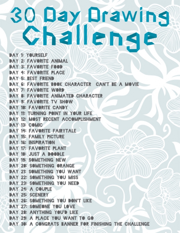 This is SO not my fault. The ever-fabulous Keris Stainton mentioned she was tempted to try Show & Tell‘s 30 Day Drawing Challenge – and I am nothing if not suggestible.