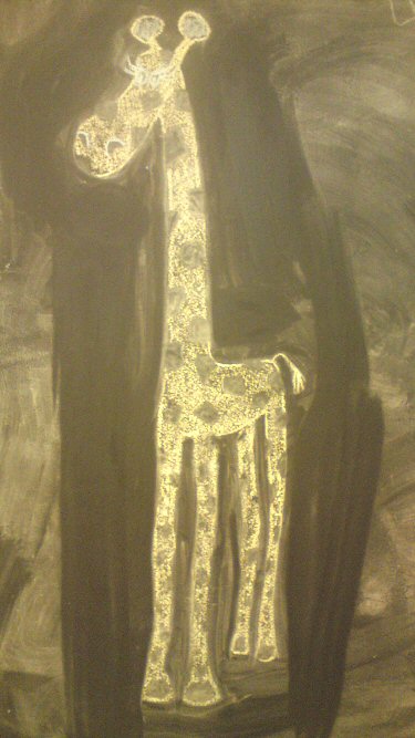Lovely, lovely giraffe :-)… Showed her to the kids who said she was ‘cool’ and then had a long discussion about whether she was drawn on slate or a blackboard.